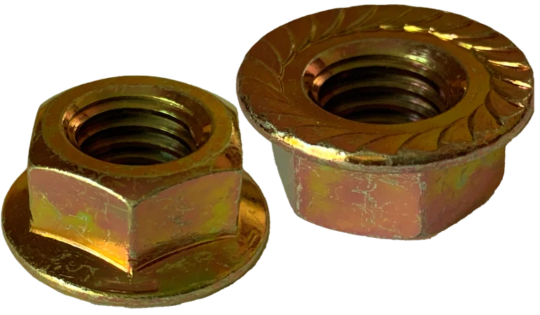 Why choose hex flange lock nuts serrated? The flange improves load distribution and reduces the risk of damage to mating surfaces, while the serrations bite into the surface to help resist loosening from vibration. The zinc yellow finish adds corrosion protection in moderate environments, making these nuts a versatile choice for both DIY projects and professional installations.